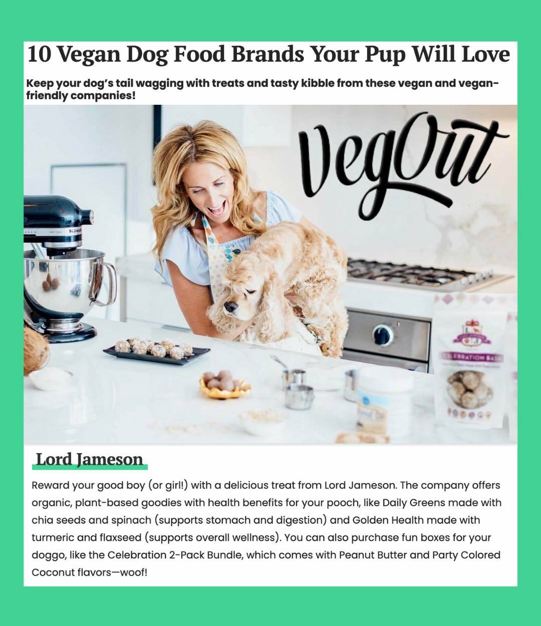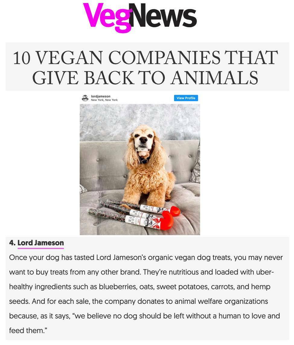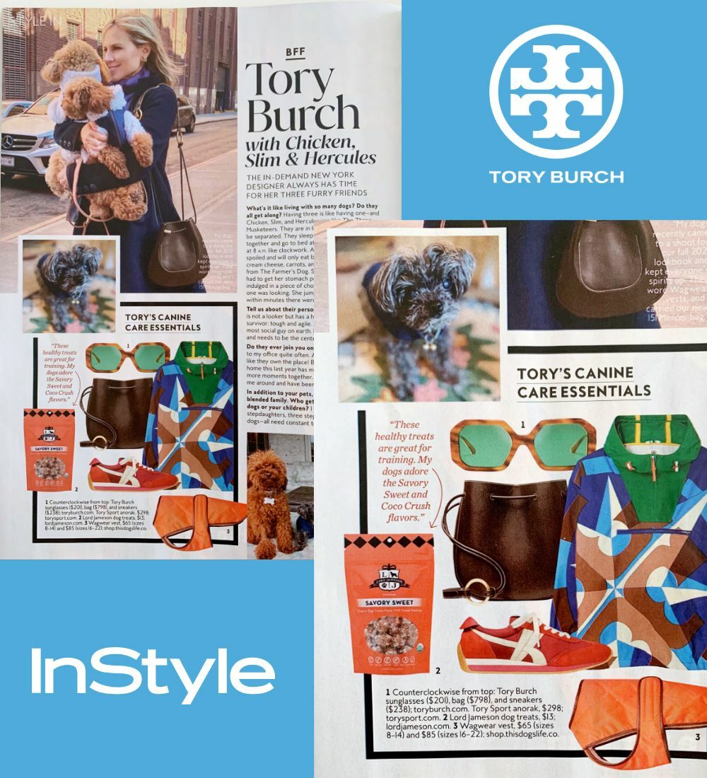 名設計師Tory Burch在接受美國InSTYLE雜誌 (2021年8月刊)專訪, 她特別選擇了Lord Jameson的有機零食作為愛犬的零食, 並於文中提到: