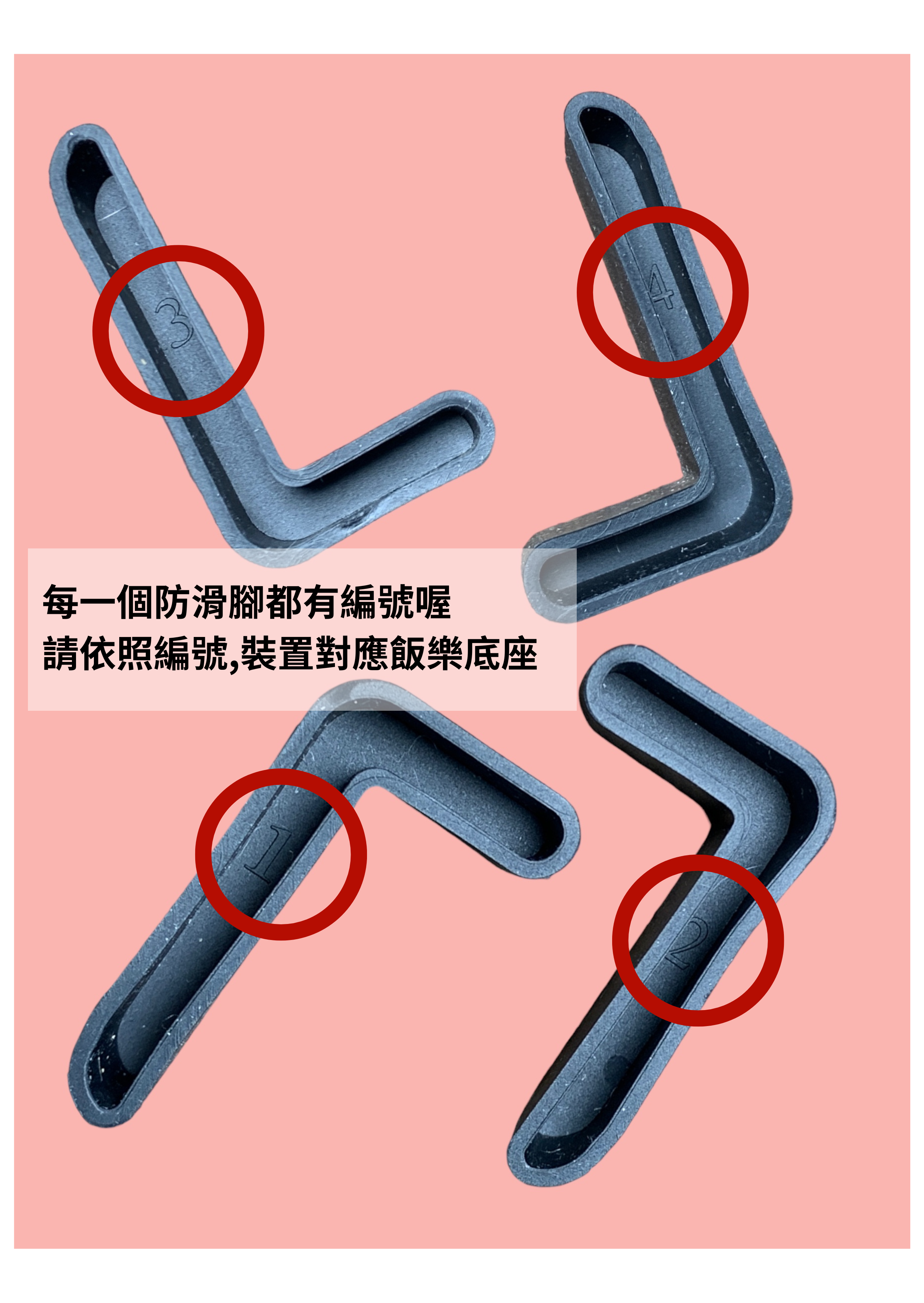 請依照防滑墊內標示的號碼(1、2、3、4)配對使用 |