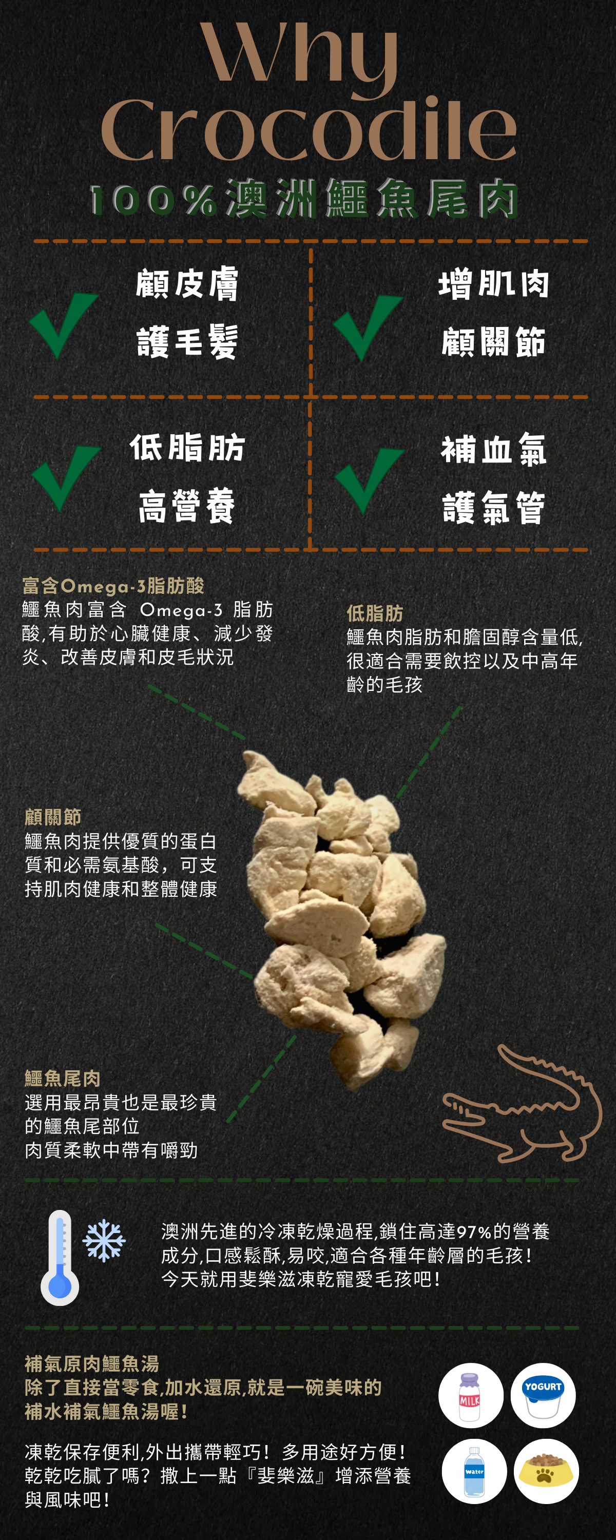低脂、低卡、高營養!犬貓都能享用的頂級鱷魚尾肉凍乾!