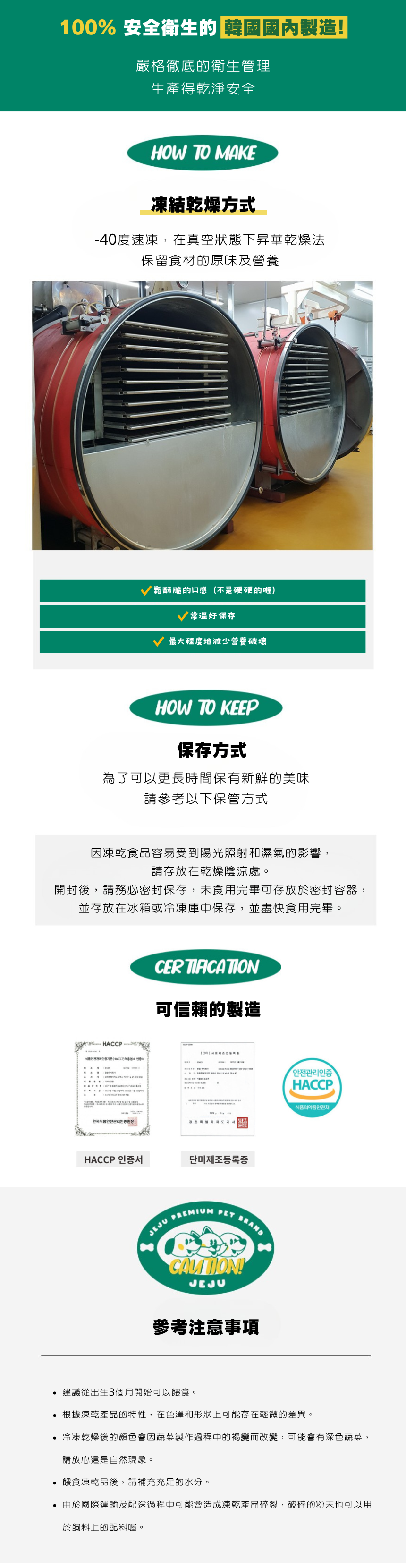 1.食用量請依照犬貓體重及所需熱量進行餵食, 並在看顧下食用 2.包裝內含有乾燥劑請勿食用。 |