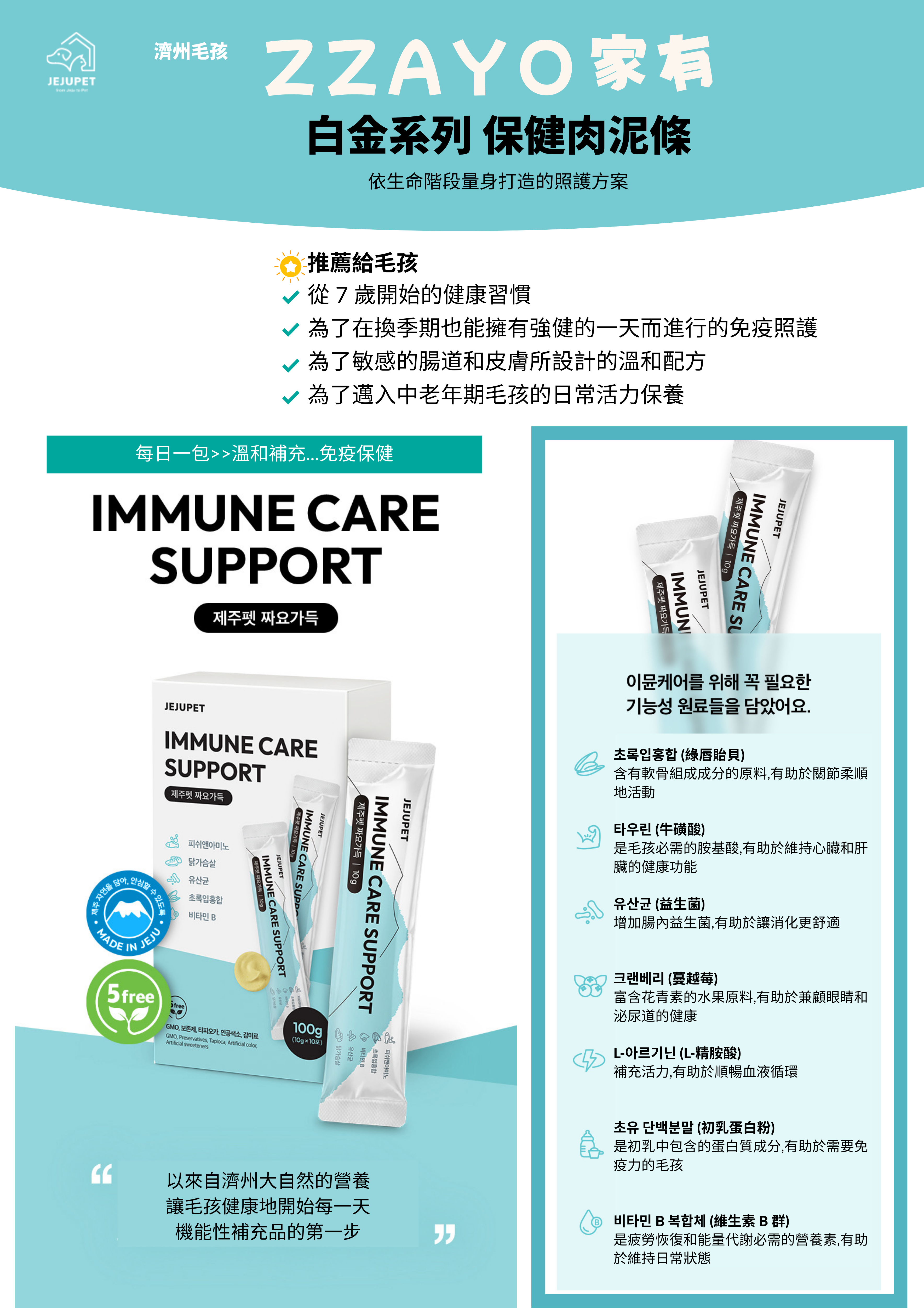 <依照毛孩生命階段量身打造的照護方案>結合美味與機能的每日營養補充~使用來自濟州島純淨自然的食材✦誠實的食材✦值得信賴的製造✦生態和諧永續✦美味與健康平衡的高營養補充