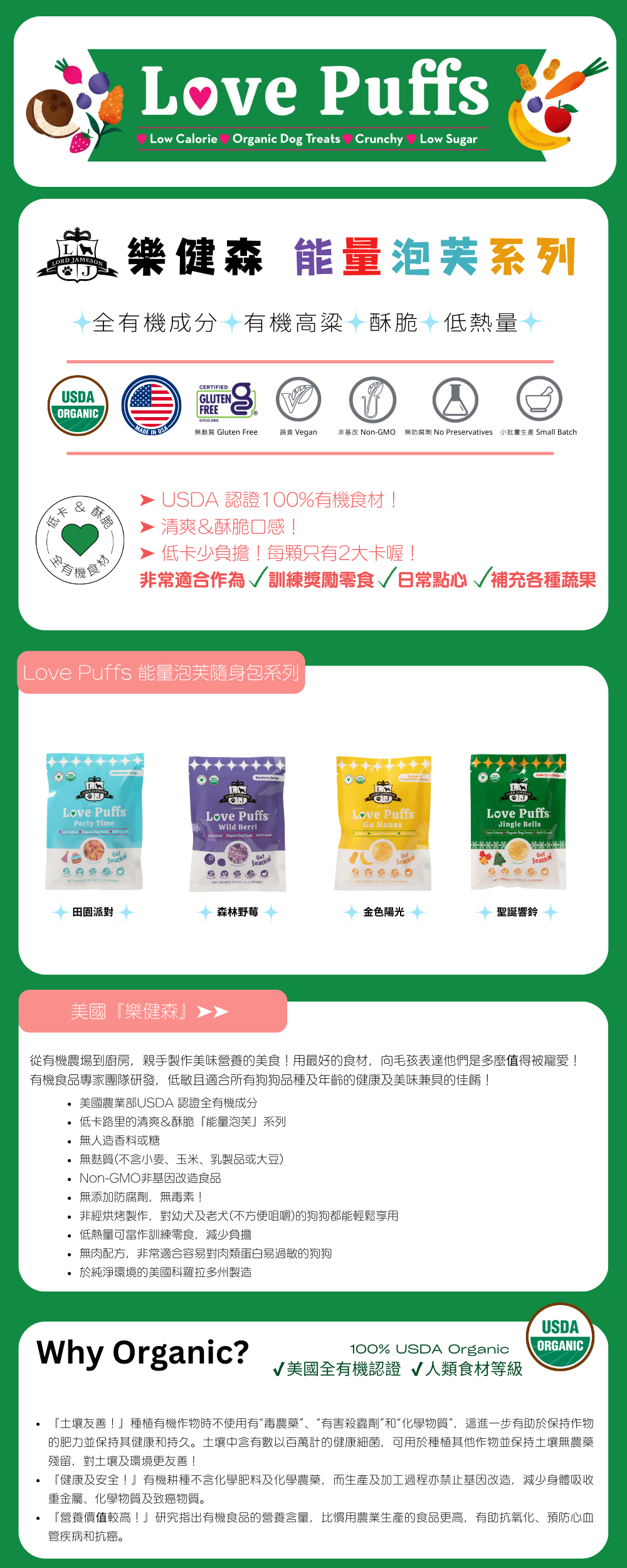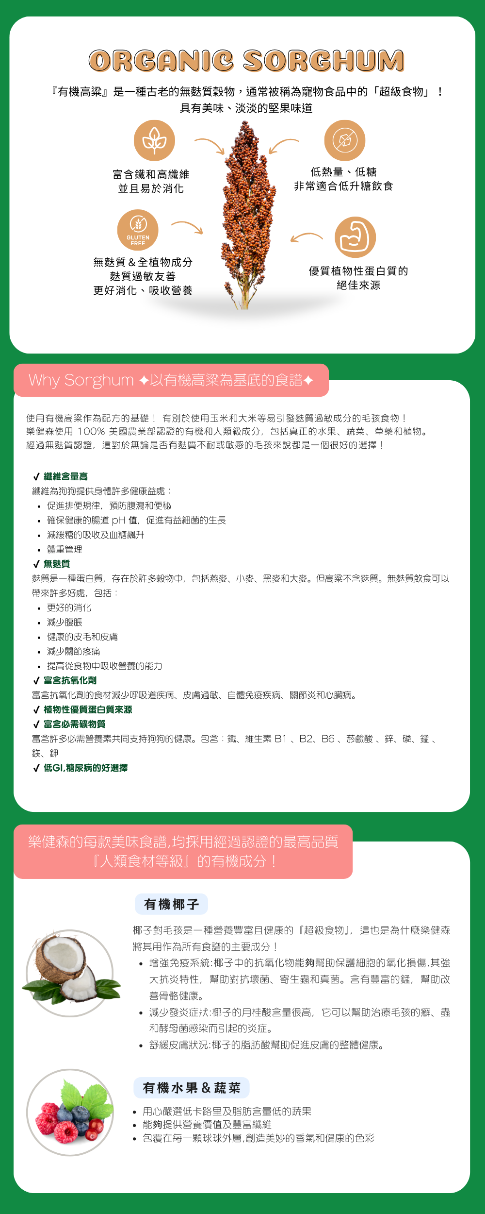 ◤有機高粱作為基礎!100% 美國農業部認證的有機和人食級成分,包括真正的水果、蔬菜、草本和植物。